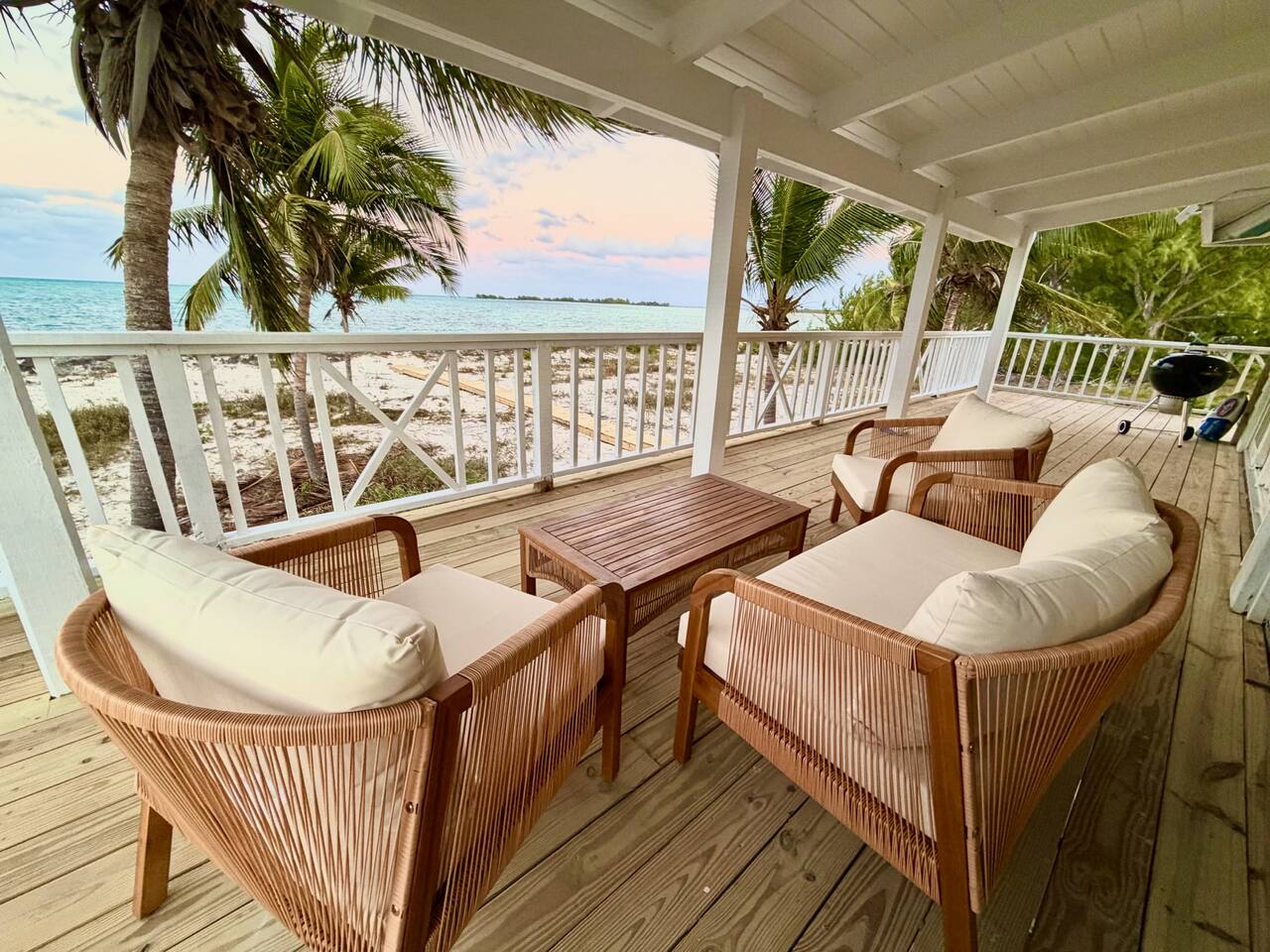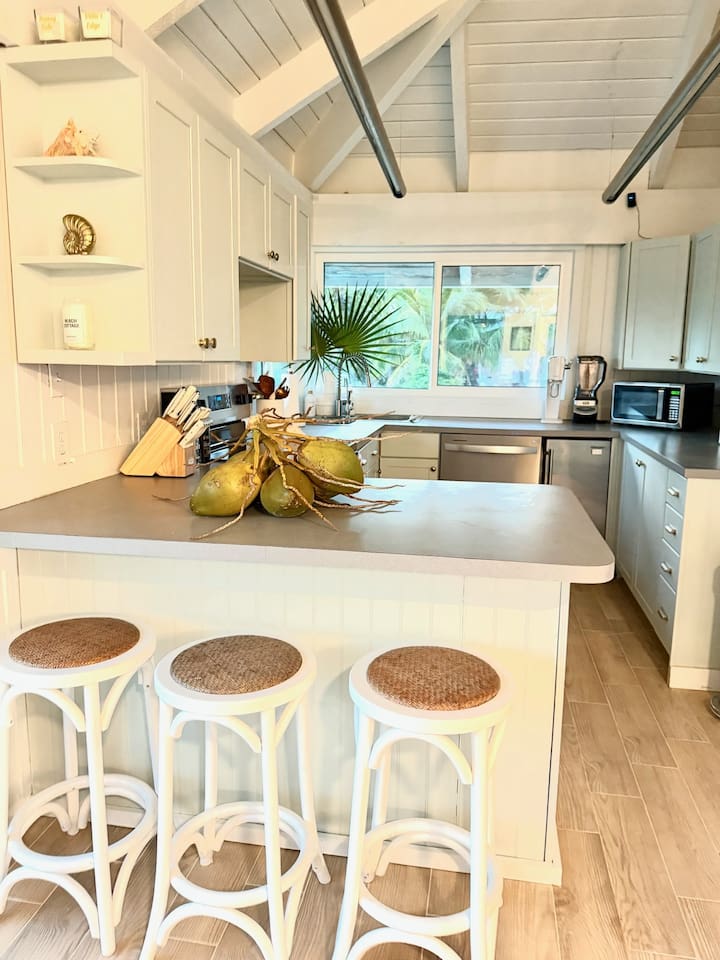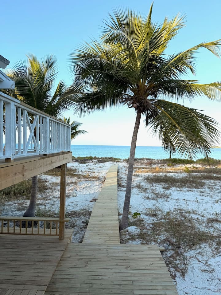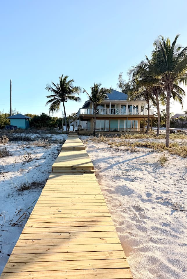 🏡 The Space This thoughtfully designed beachfront home features: - 3 bedrooms + loft sleeping area - 3.5 bathrooms - Sleeps up to 8 guests comfortably - Two levels of wrap-around decks with unobstructed ocean views - Direct beach access — just steps from your door - Bright coastal interiors, vaulted ceilings, and natural textures create an airy, relaxed atmosphere that feels both luxurious and inviting. 🛏️ Sleeping Arrangements - Primary Suite: King bed, en-suite bath, and direct deck access with ocean views - Second Bedroom: Queen bed with private bath - Third Bedroom: 2 twin beds (one twin day bed with twin pull out trundle) with adjacent full bath - Loft: 2 twin beds - Additional sleeping space, ideal for children or extra guests 🍽️ Kitchen & Living Areas - Fully equipped chef’s kitchen with modern appliances - Spacious island seating for casual meals or morning coffee - Open-concept living and dining areas filled with natural light - Seamless indoor-outdoor flow to the decks for sunset dining and lounging Whether you’re cooking fresh seafood or enjoying a quiet evening breeze, the space is made for connection and ease. 🌊 Outdoor Living - Wrap-around decks — sunrise coffee and sunset cocktails await - Lounge, dine, or simply listen to the waves from multiple outdoor seating areas - Palm-framed ocean views in every direction - Steps from pristine, quiet beachfront ideal for swimming, beach walks, and stargazing This is island living at its best. 🧺 Services & Amenities What truly sets The Green Flash Cottage apart: - Daily towel service - Daily housekeeping - High-speed Wi-Fi - Air conditioning throughout - Washer & dryer - Beach towels and essentials provided Enjoy the ease of a boutique resort with the privacy of your own beachfront home. 📍 Location Located on Great Harbour Cay, one of the Bahamas’ most peaceful and unspoiled islands, The Green Flash Cottage offers tranquility without sacrificing comfort. Whether you’re here to disconnect, explore the island, or simply relax by the sea, this is a place guests return to again and again. ✨ Why Guests Love It ✔ True beachfront — no roads, no barriers ✔ Exceptional cleanliness and daily service ✔ Thoughtful design with elevated finishes ✔ Quiet, private, and uncrowded beaches ✔ Perfect balance of luxury and laid-back island charm