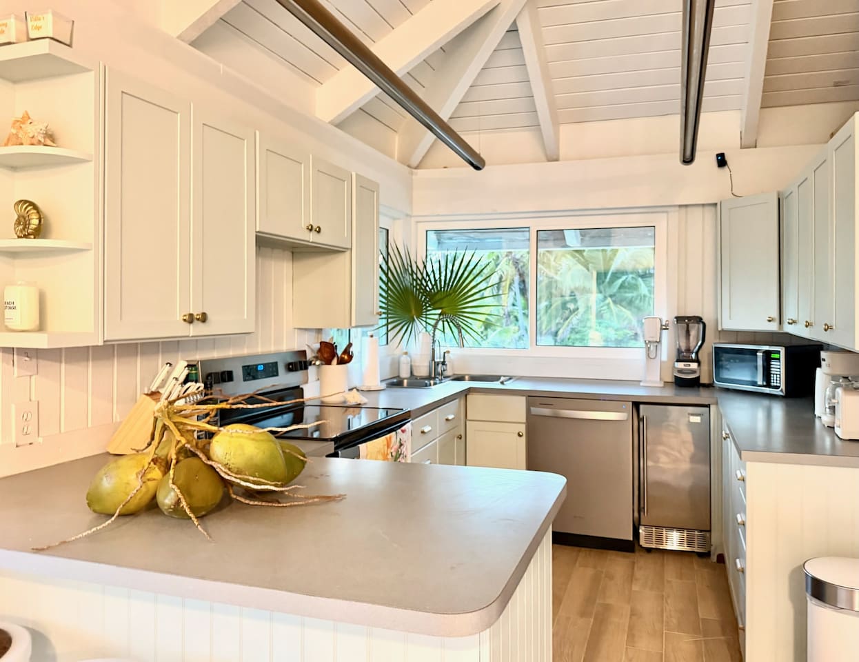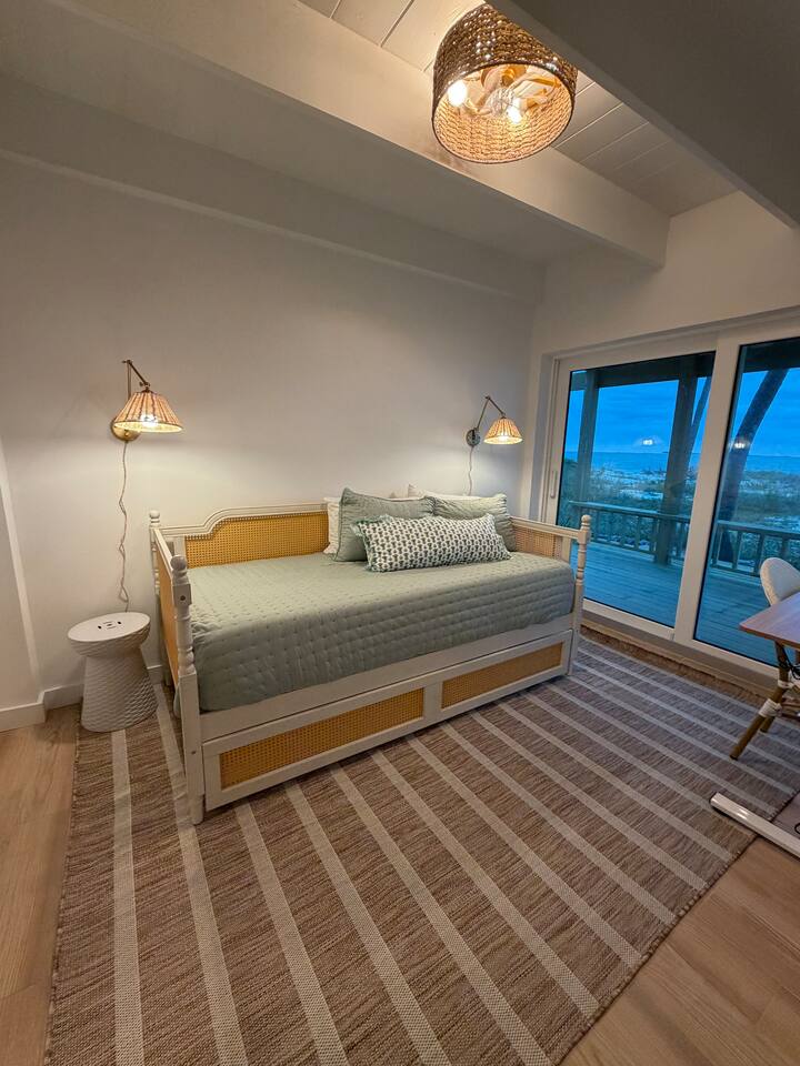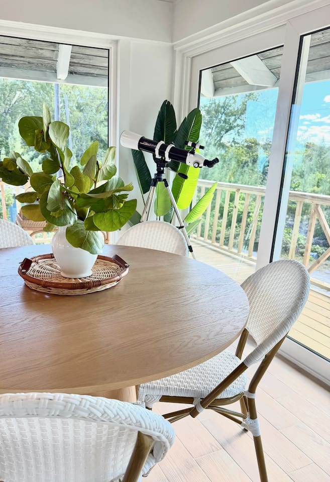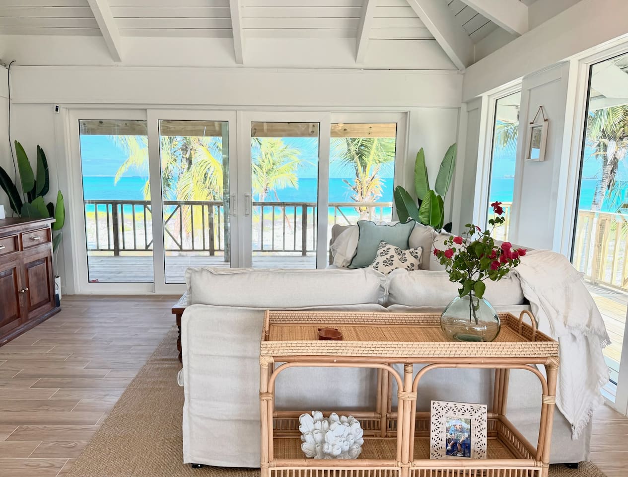 🏡 The Space This thoughtfully designed beachfront home features: - 3 bedrooms + loft sleeping area - 3.5 bathrooms - Sleeps up to 8 guests comfortably - Two levels of wrap-around decks with unobstructed ocean views - Direct beach access — just steps from your door - Bright coastal interiors, vaulted ceilings, and natural textures create an airy, relaxed atmosphere that feels both luxurious and inviting. 🛏️ Sleeping Arrangements - Primary Suite: King bed, en-suite bath, and direct deck access with ocean views - Second Bedroom: Queen bed with private bath - Third Bedroom: 2 twin beds (one twin day bed with twin pull out trundle) with adjacent full bath - Loft: 2 twin beds - Additional sleeping space, ideal for children or extra guests 🍽️ Kitchen & Living Areas - Fully equipped chef’s kitchen with modern appliances - Spacious island seating for casual meals or morning coffee - Open-concept living and dining areas filled with natural light - Seamless indoor-outdoor flow to the decks for sunset dining and lounging Whether you’re cooking fresh seafood or enjoying a quiet evening breeze, the space is made for connection and ease. 🌊 Outdoor Living - Wrap-around decks — sunrise coffee and sunset cocktails await - Lounge, dine, or simply listen to the waves from multiple outdoor seating areas - Palm-framed ocean views in every direction - Steps from pristine, quiet beachfront ideal for swimming, beach walks, and stargazing This is island living at its best. 🧺 Services & Amenities What truly sets The Green Flash Cottage apart: - Daily towel service - Daily housekeeping - High-speed Wi-Fi - Air conditioning throughout - Washer & dryer - Beach towels and essentials provided Enjoy the ease of a boutique resort with the privacy of your own beachfront home. 📍 Location Located on Great Harbour Cay, one of the Bahamas’ most peaceful and unspoiled islands, The Green Flash Cottage offers tranquility without sacrificing comfort. Whether you’re here to disconnect, explore the island, or simply relax by the sea, this is a place guests return to again and again. ✨ Why Guests Love It ✔ True beachfront — no roads, no barriers ✔ Exceptional cleanliness and daily service ✔ Thoughtful design with elevated finishes ✔ Quiet, private, and uncrowded beaches ✔ Perfect balance of luxury and laid-back island charm